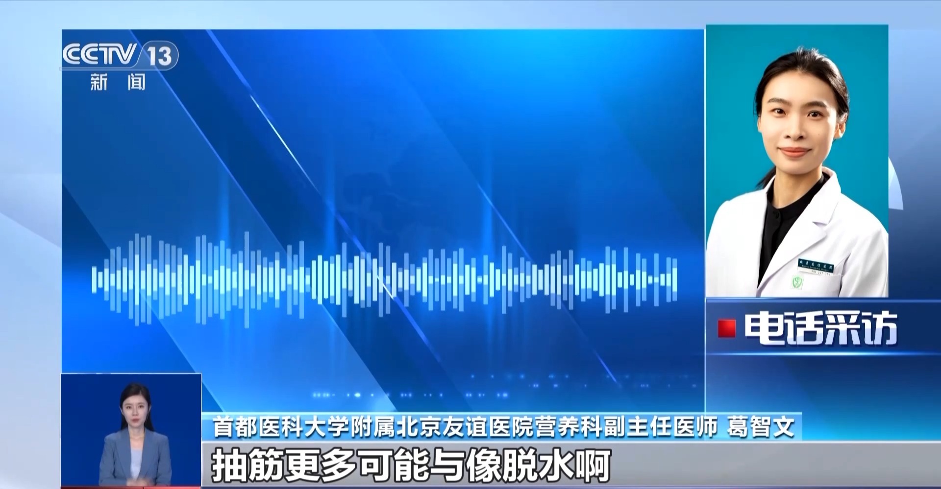 首都医科大学附属北京友谊医院营养科副主任医师 葛智文:抽筋更多是与过度疲劳或脱水有关系,过量补盐反而会增加身体负担。
